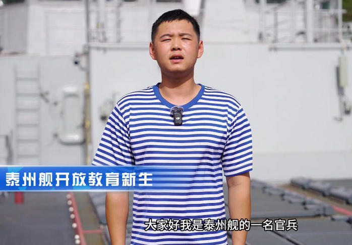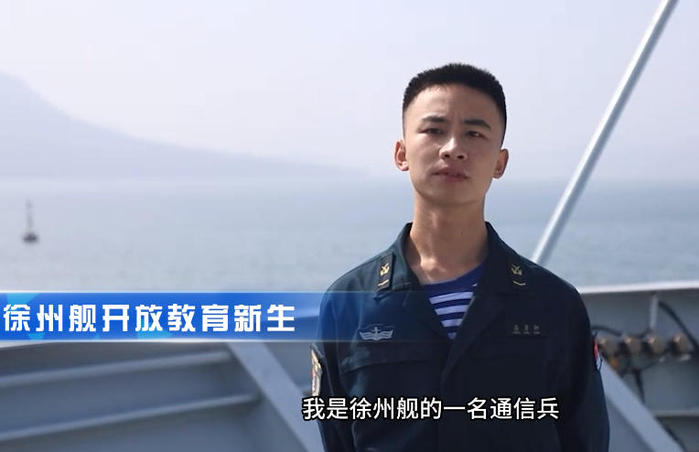 Open-education student representatives, naval officers from the Xuzhou and Taizhou warships, embarked on their academic voyage with military pride.