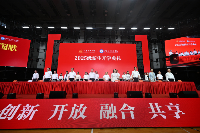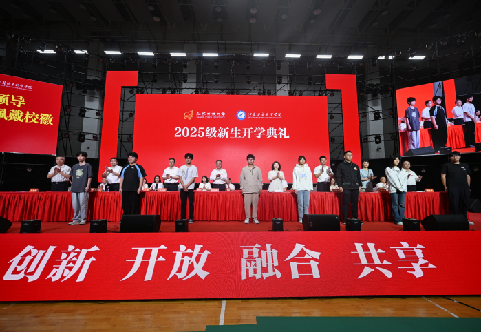 On the morning of September 27th, Jiangsu Open University (Jiangsu City Vocational College) held the Opening ceremony for Class of 2025 at the Gymnasium of Yingtian Campus, with livestreamed branch ceremonies connecting over 20,000 open-education students from 73 local open universities province-wide and 2,109 vocational-education students from across the nation.