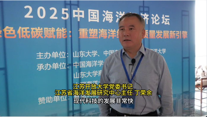 On October 18, the 2025 China Marine Economy Forum opened in Weihai, Shandong, focusing on the theme “Green and Low-Carbon Empowerment: Reshaping the New Engine for High-Quality Marine Economic Development”. The event was jointly organized by Shandong University, the Chinese Society of Oceanography, and Ocean University of China. Ding Rongyu, Secretary of the Party Committee of JSOU and Director of the Jiangsu Marine Development Research Center, was invited to deliver a keynote speech at the forum.