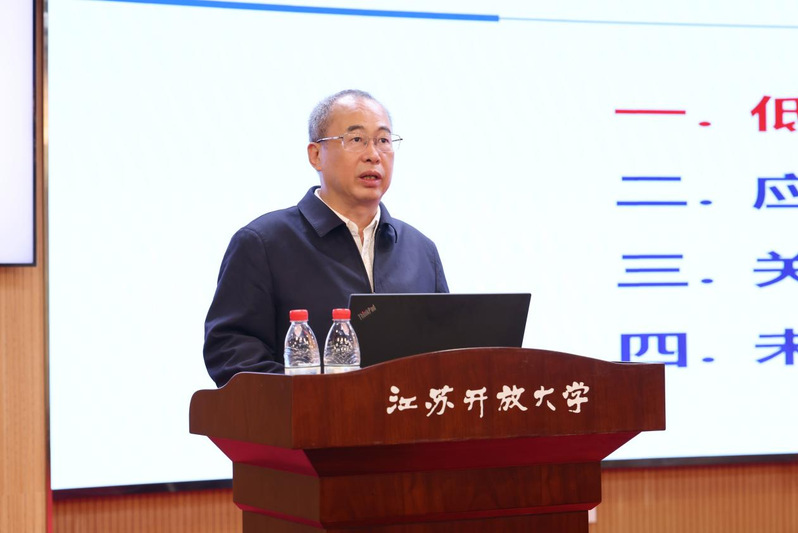 Attendees included Liu Guiyou, Standing Committee Member of the JSOU Party Committee and Vice President; Xiang Jinwu, Professor at Beihang University and Member of the Chinese Academy of Engineering; and Zhou Jun, Director of the Talent Development Office under the Jiangsu Provincial Department of Human Resources and Social Security. The session was chaired by Xu De, Executive Director of JSOU’s Provincial Continuing Education Base for Professionals.